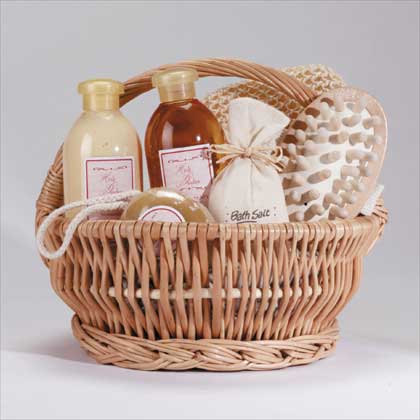 An evening of relaxation beckons from this picnic basket! Bath gel, soap, lotion, and bath salts in a delicious Pure Pleasure Honey Vanilla scent are combined with a wood massage tool and a sponge. 34187 |
