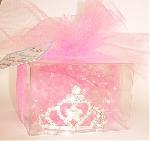 "Princess for a Day" mini tiara with flower center that dangles. Comes in a perfect gift box with "Princess for a Day" tag.