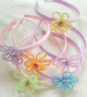 Handmade satin (pink or purple) headbands with big beaded flower with pink or purple bead center is a "must have"!! It has a european flare and will delight any little girl (or bigger girl too!).